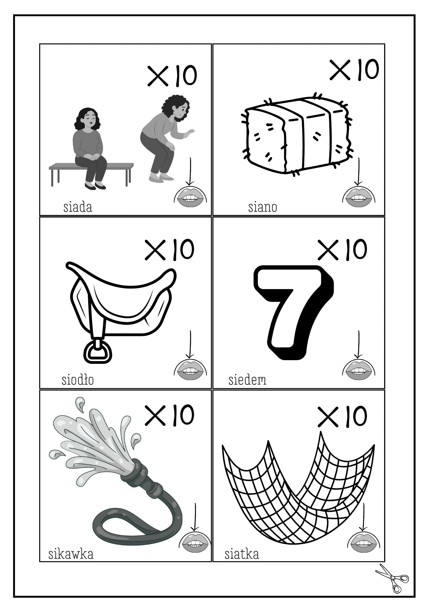 na każdej karcie 6 gotowych fiszek (razem mamy ponad 72 zadania do jednej głoski WOWO)